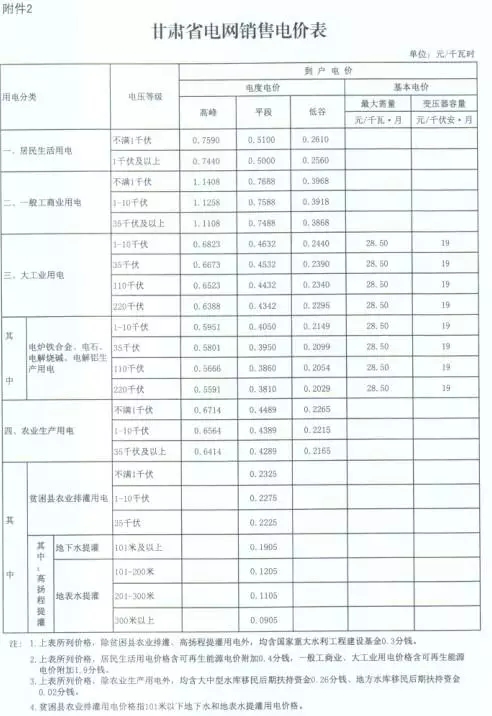 2017-2019年監管周期內甘肅電網分類別分電壓等級輸配電價標準詳見附件1。輸配電價改革降價空間用于降低省內大工業用電和一般工商業用電價格。