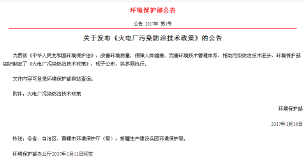 關于發布《火電廠污染防治技術政策》的公告