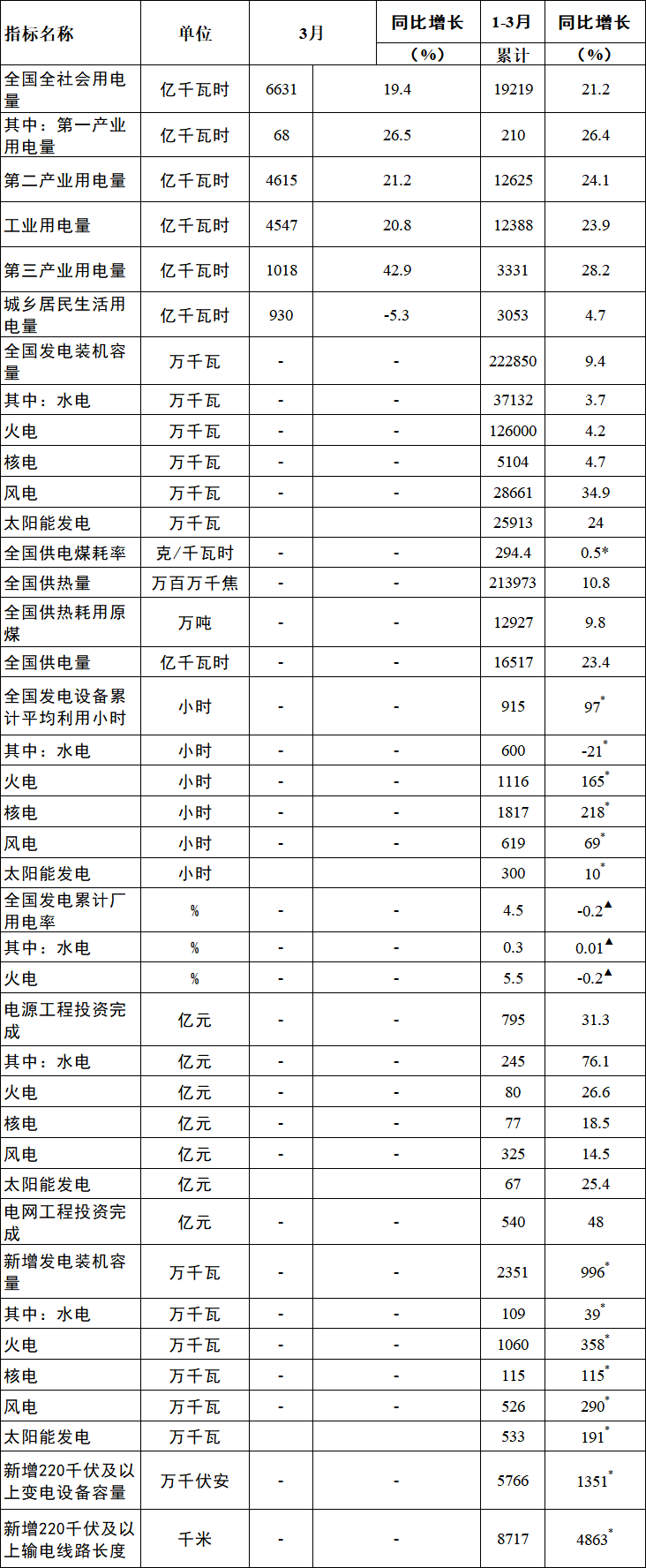國(guó)家能源局發(fā)布2021年1-3月份全國(guó)電力工業(yè)統(tǒng)計(jì)數(shù)據(jù)