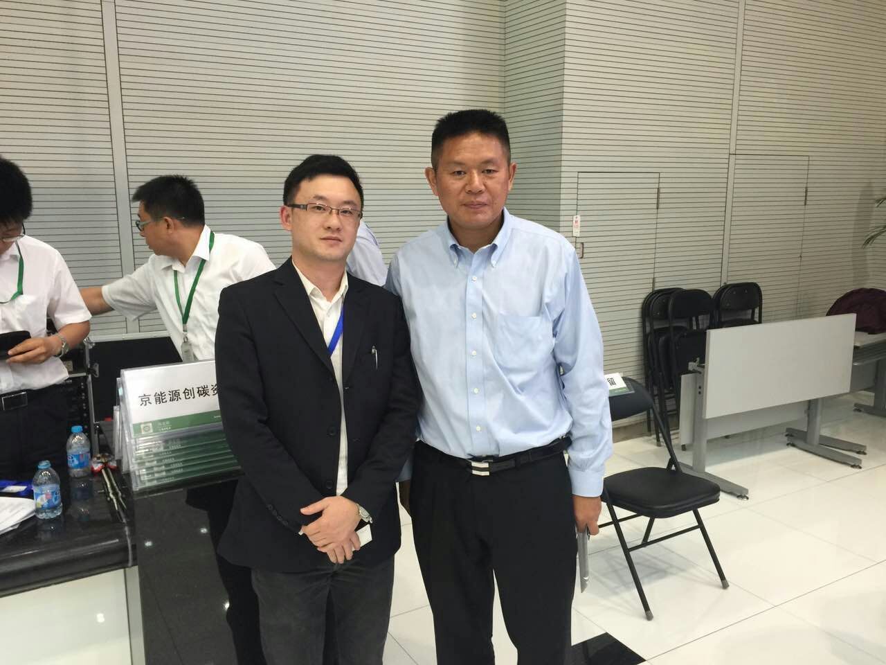 中科宇杰項(xiàng)目部總監(jiān)馬晶晶(右一)、北京環(huán)境交易所總裁 梅德文(左一)