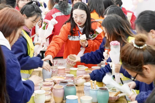 頒獎結束后,基地又為她們舉辦了趣味手作嘉年華活動。現場設置了三個體驗工坊,分別是油畫手繪工坊、多肉園藝工坊,奶油膠手作工坊。在各部門女職工代表的創意中,一盆盆多肉、一款款手工發卡、一幅幅油畫喚醒了大家沉睡的少女心,找到了屬于自己的另外一面。
