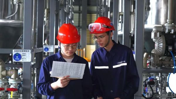 涂瀟拿著工藝單,在車間不停踱步思索,猛然間靈光乍現,原本的分步反應需要兩個反應釜,能否合二為一,一步反應,進而提升效率?涂瀟立刻聯系研發部門,連夜驗證方案的可行性。功夫不負有心人,涂瀟的設想驗證成功,大幅提升了生產速度,實現了11天內保質保量完成訂單交付,兌現對客戶的交付承諾,獲得客戶好評。
