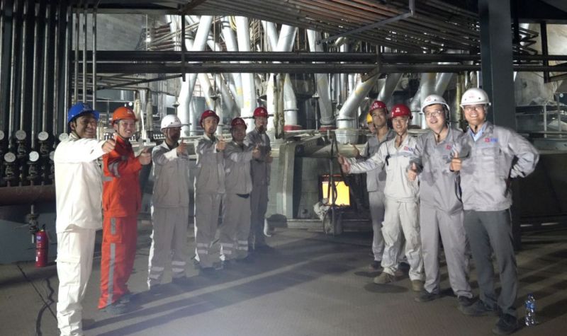2022年8月,項目進入最后的沖刺階段。作為項目建設負責人,劉寅更是駐守到一線,在工地、車間現場,帶領設備安裝管理團隊,專攻調試期間的現場突發問題,實行“24小時現場排班制”,一刻不漏盯現場、盯設備、盯產線。8月份的印尼正值高溫高熱季節,劉寅的身先士卒也影響了所有項目建設、調試人員,最終大家團結一心,奮力沖刺,最終打贏了這場“硬仗”?;貞涍@段經歷,劉寅至今印象深刻,他幽默地說道:“大家24小時都在現場,每天一身臭汗,全部變成了‘油膩男’,但每個人眼神中的堅毅讓我相信項目一定能成。那是一段難忘的經歷,很榮幸與他們在同一條’戰壕‘里作戰,一起為勝利而戰!”
