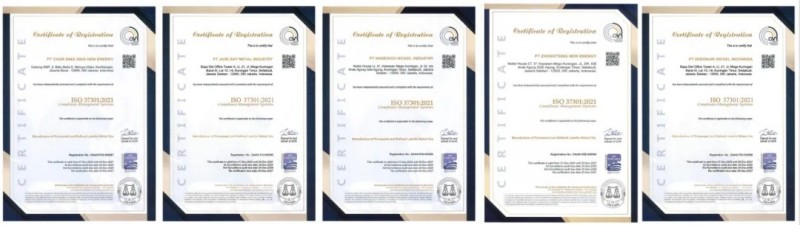 2024年10月,中偉印尼大區(qū)與國際專業(yè)評級機構DAAS展開評審工作,針對中偉股份印尼大區(qū)中青新能源有限公司、印尼中偉鼎興新能源有限公司、印尼德邦鎳業(yè)有限公司、翡翠灣金屬工業(yè)有限公司、納德思科里克工業(yè)有限公司五個主要生產(chǎn)主體同步開啟認證工作,并于近日完成全部認證。