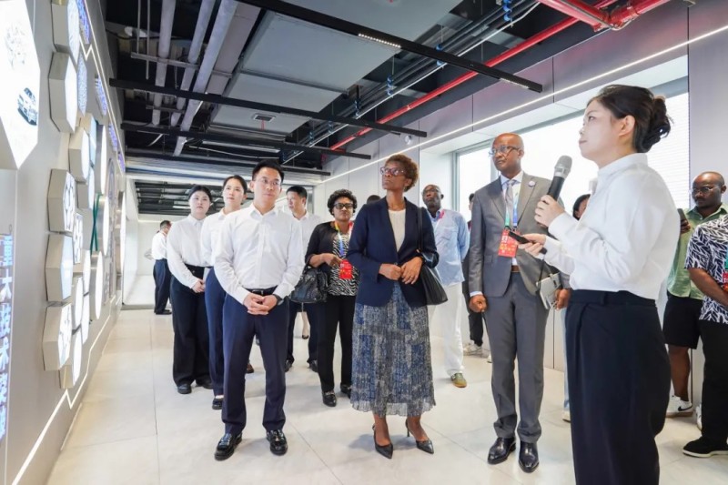 考察團一行先后參觀了中偉科技館、中偉全球研發中心等,詳細了解中偉發展歷程、科技創新以及全球產業布局等情況。在科技館,劉一重點向考察團介紹了中偉“資源開發-材料智造-全球循環”的新能源材料產業生態以及公司圍繞這一生態所作的的全球產業布局。代表團成員認真聆聽,對中偉的生態化、全球化發展表示由衷的贊賞,并不時就中偉在非洲產業布局和未來規劃進行問詢,探討深入合作的可能性。