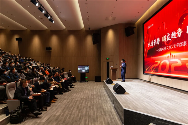 大會伊始,中偉股份財務中心總經理朱宗元以“追夢路上 行穩致遠”為主題,向全體參會人員詳細匯報了2021年公司的經營概況,并對2022年的整體預算方案進行了介紹。他表示,在過去的一年中,中偉生產經營主要指標再創新高,發展態勢持續向好。面對行業的激烈競爭,公司充分彰顯了發展的韌性與潛力,很好地順應了產業發展趨勢,實現了經營的穩步前行。隨后,鄧偉明以“認清形勢、順應趨勢、同心協力,實現中偉又好又快發展”為主題發表了重要講話,分別就當前中偉的發展形勢、行業趨勢進行了深度剖析與分享,并確定了“國際化、多元化、精益化”為2022年度中偉全年發展主題。