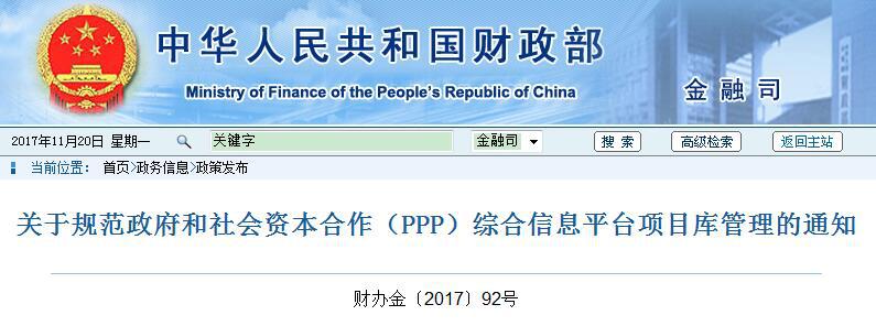 投資額達(dá)17.8萬(wàn)億元的PPP項(xiàng)目庫(kù)管理進(jìn)一步從嚴(yán)規(guī)范。11月16日,財(cái)政 部公布《關(guān)于規(guī)范政府和社會(huì)資本合作(PPP)綜合信息平臺(tái)項(xiàng)目庫(kù)管理的通知》(以下簡(jiǎn)稱《通知》)。