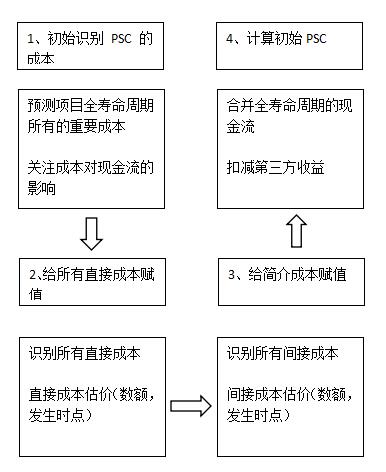 初始PSC代表了傳統采購模式下政府生產和交付參考項目的基本成本。初始PSC的計算是一個復雜而嚴謹的過程,需要對所成本進行界定和分類,預計可能發生的時間和數額,再進行全面的整理和歸納,最后實現凈現值的計算。